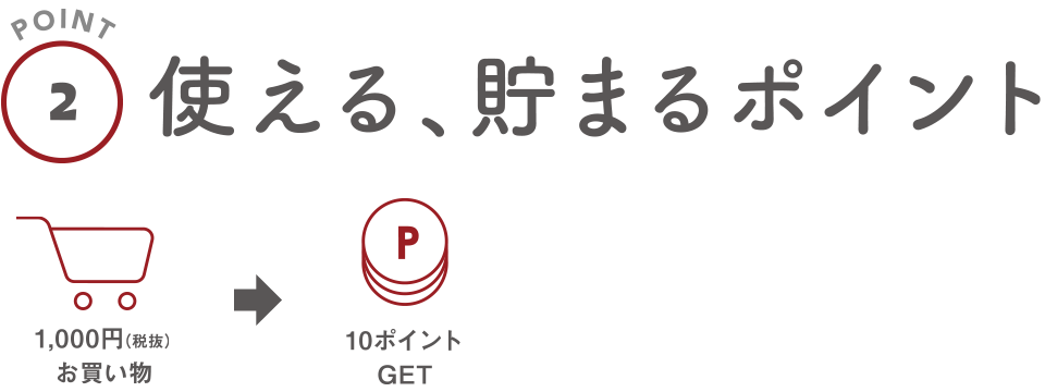 商品の購入や、アプリの機能を使うと、今まで以上にお得にお買い物できるポイントやクーポンが