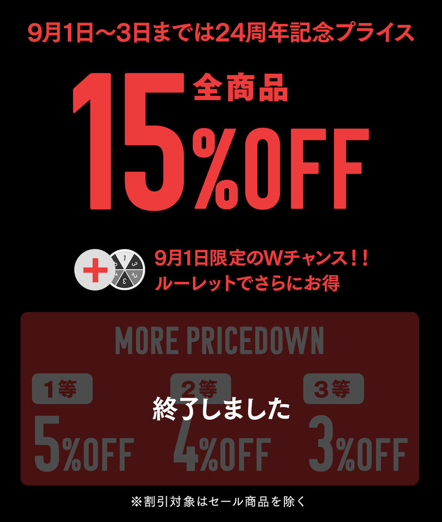 15%OFF:2025年9月1日(月)〜9月3日(水)