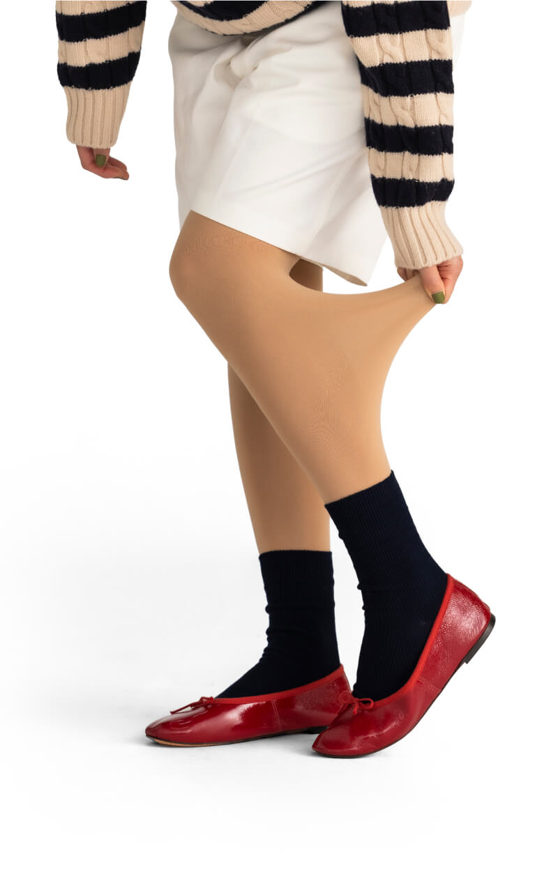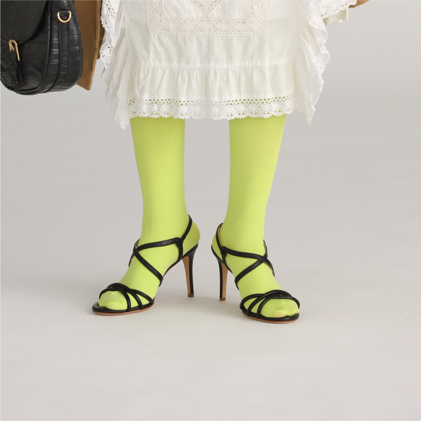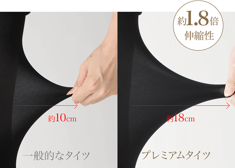 一般的なタイツに比べ、超極細繊維を贅沢に使用。一般的なタイツより1.8倍もの伸縮性で、脚にピッタリフィットします。