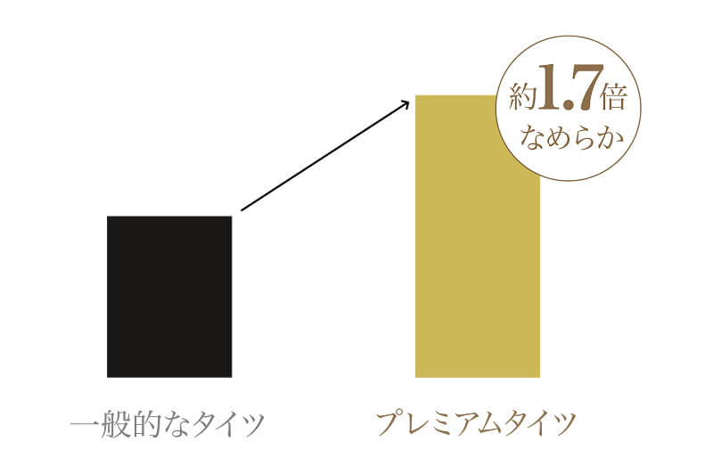表面の粗さ(凹凸)を数値化する機械でなめらかさを計測。プレミアムタイツの肌に触れる内側部分は、一般的なタイツと比較して1.7倍という結果に。