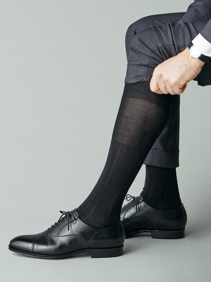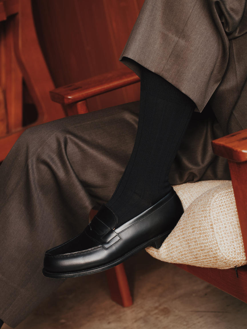 緻密なリブの編み目は履く人の足に優しくフィットし、
