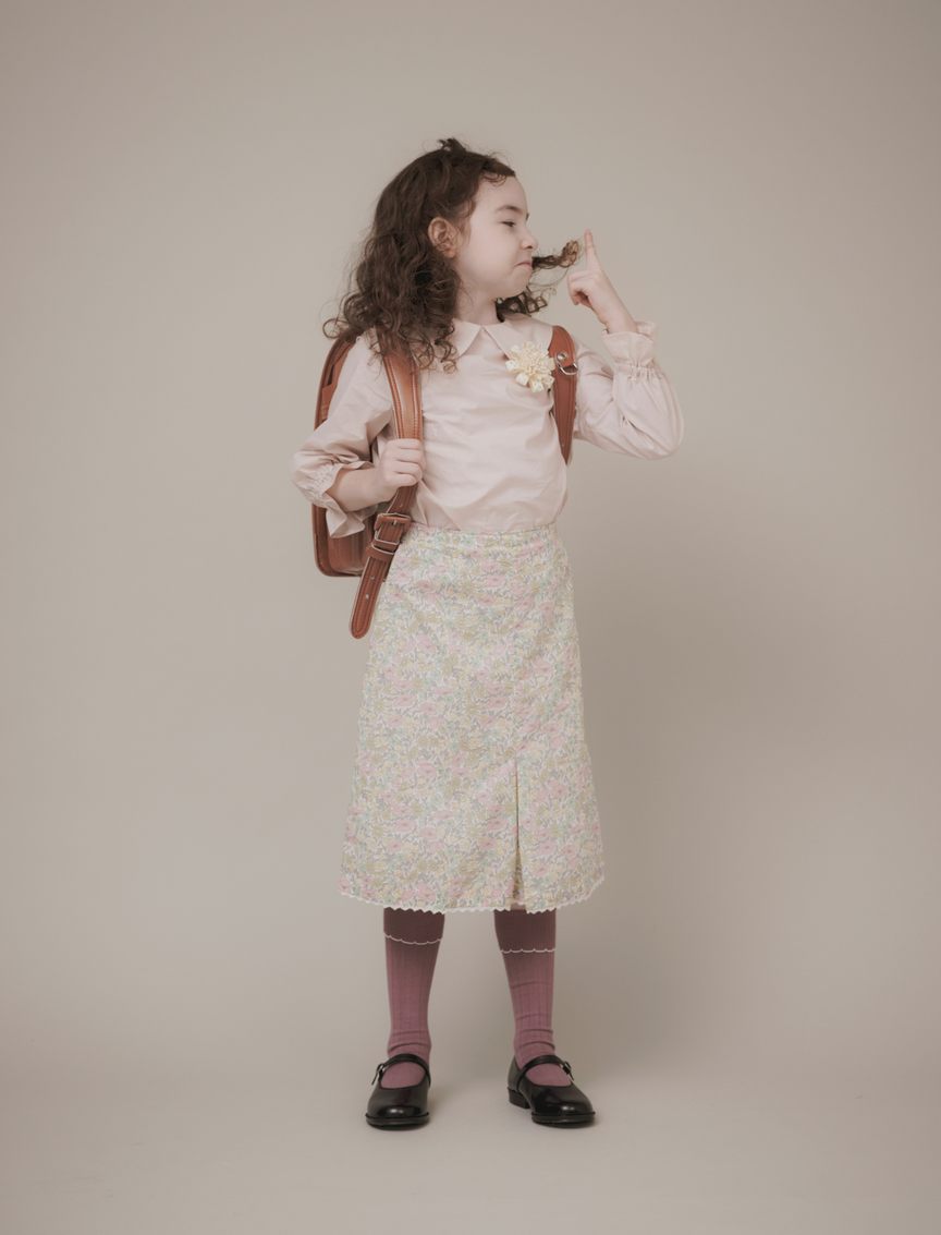 ブラウス¥25,300(minä perhonen/ミナ ペルホネン) スカート¥24,640(CARAMEL/キャラメル代官山) シューズ¥13,750(HARUTA/ハルタ) その他 スタイリスト私物