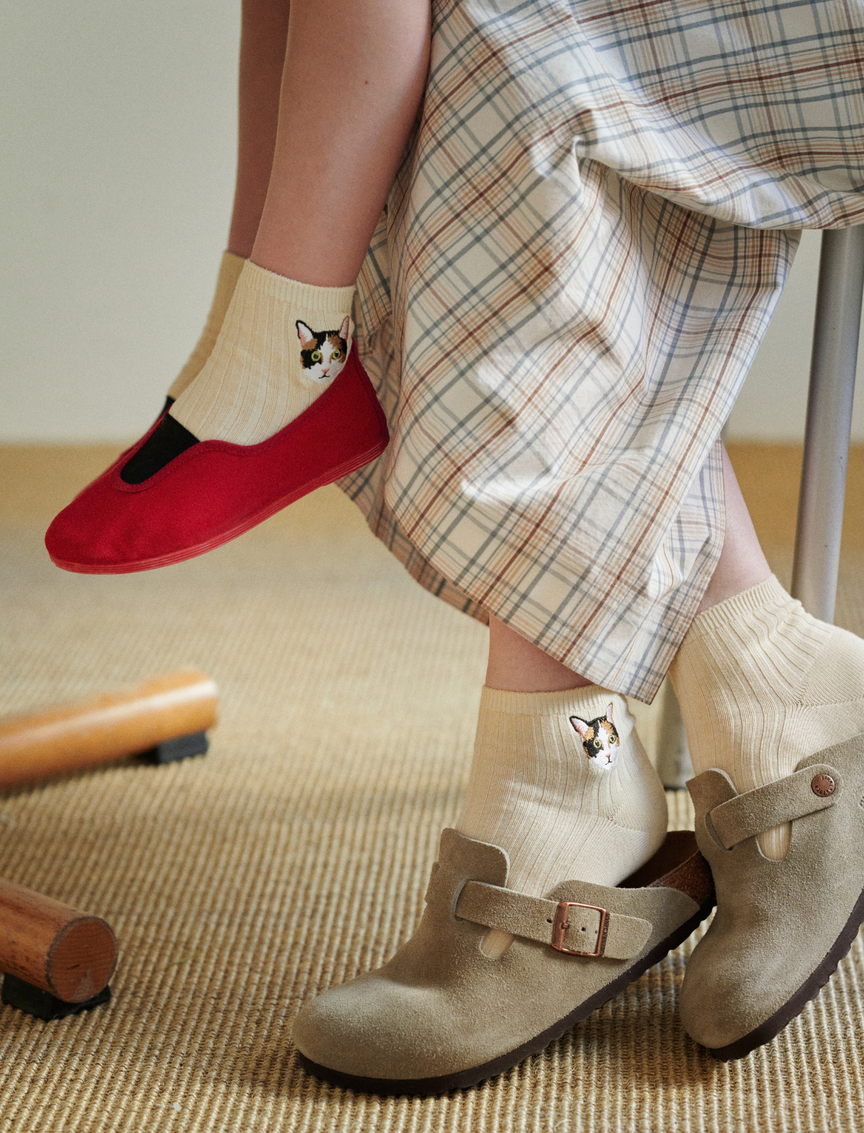 ポロニット ※ブラとセットアイテム ¥35,200(NICENICE MOMENT/ナイスナイスモーメント) スカート¥33,000(FUJI/フジ) シューズ¥24,200(BIRKENSTOCK/ビルケンシュトック・ジャパン カスタマーサービス)