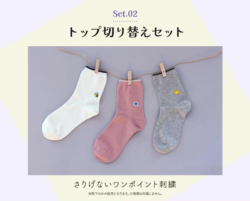 【WEB限定】トップ切替刺繍ソックス 24.5~26.5cm 3足セット