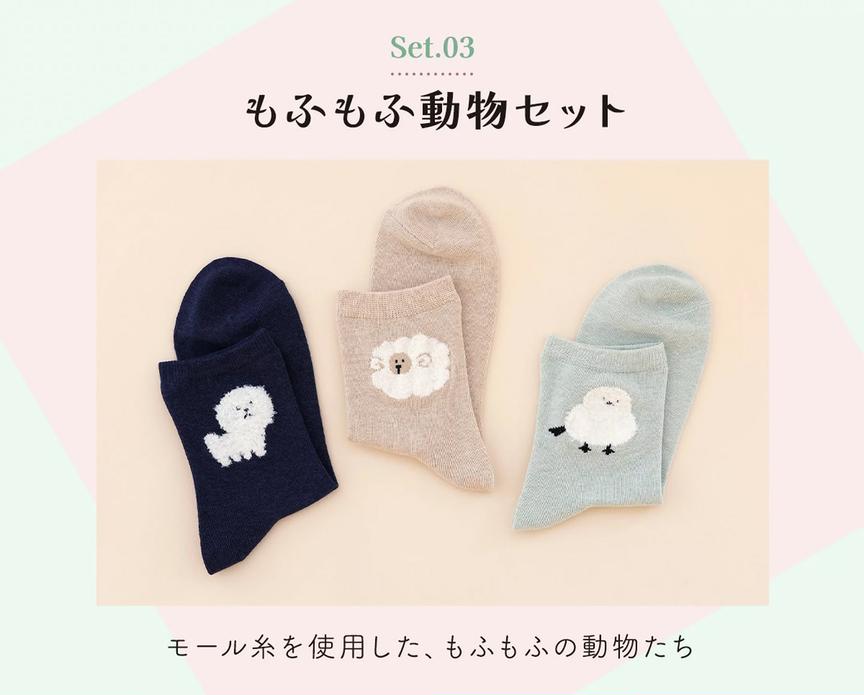 【WEB限定】もふもふ動物ショートソックス 24.5~26.5cm 3足セット