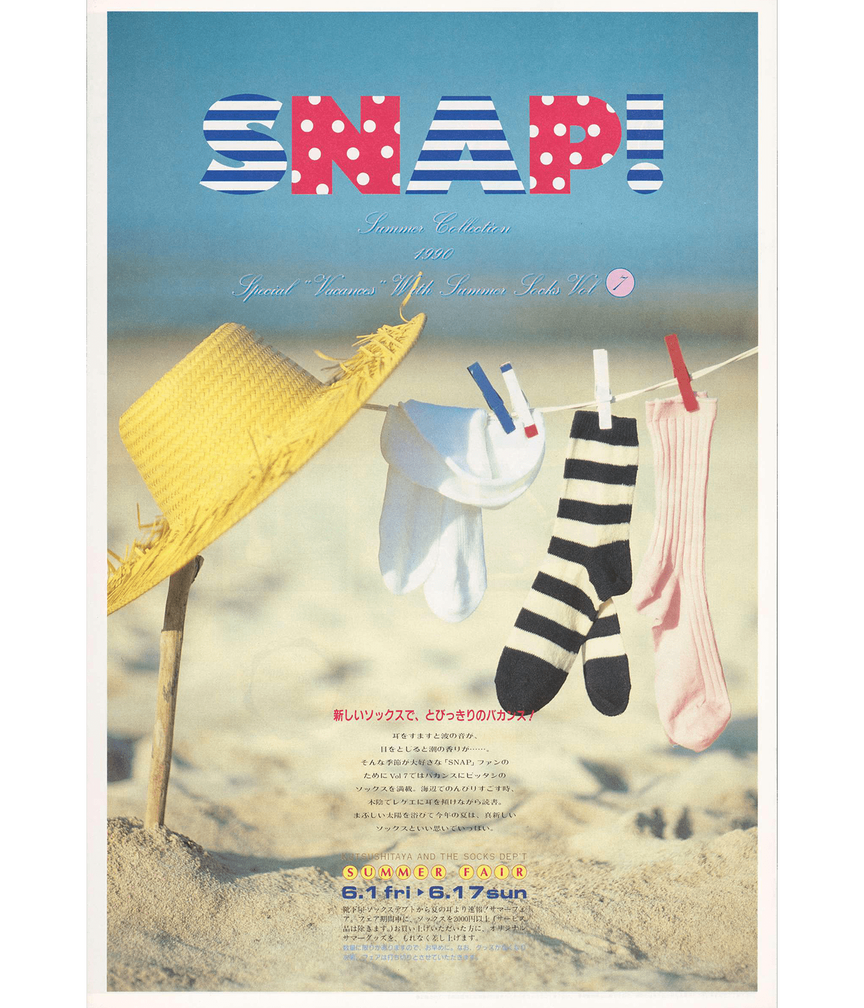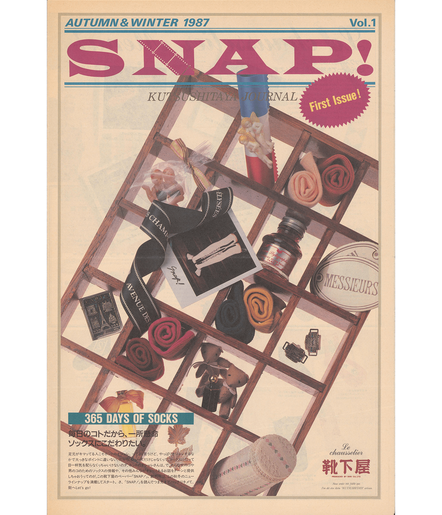1980年代後半〜2000年代前半にかけて 靴下屋の店頭で配布されていた タブロイド紙『SNAP』。 靴下屋40周年を記念して 『SNAP』の中身を 少しだけお見せしちゃいます!