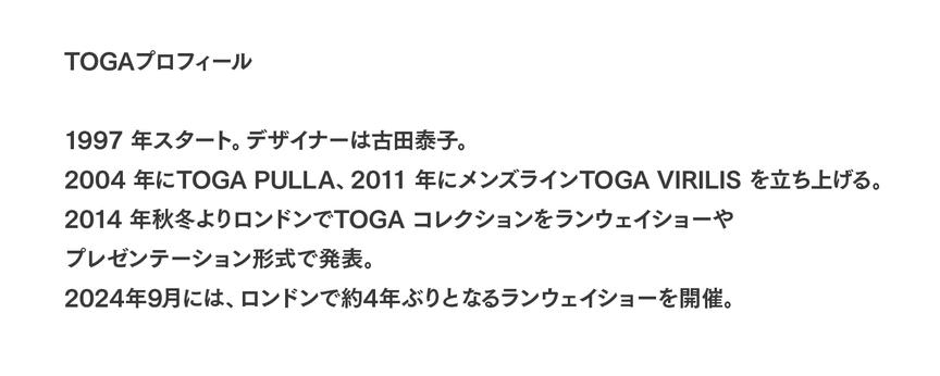 日本のファッションブランド「TOGA」と