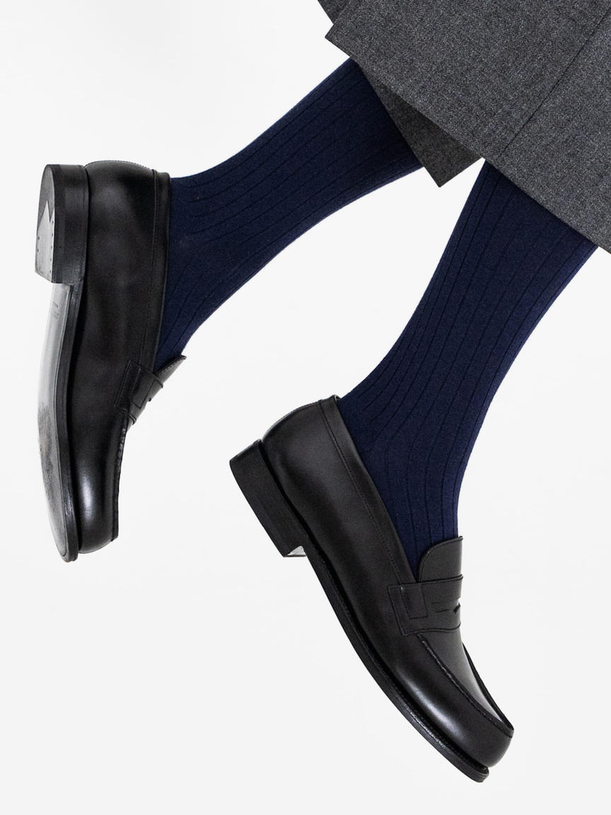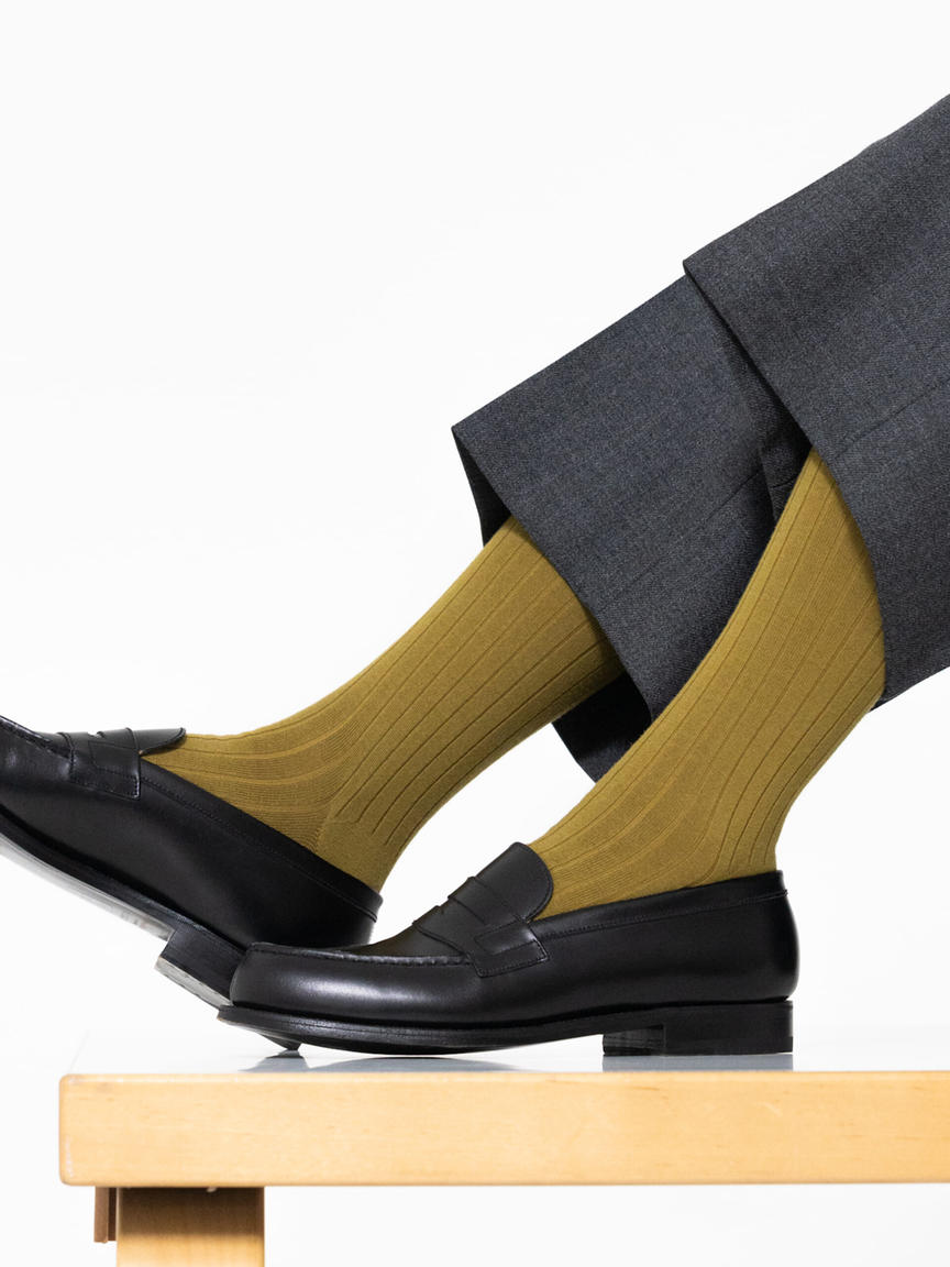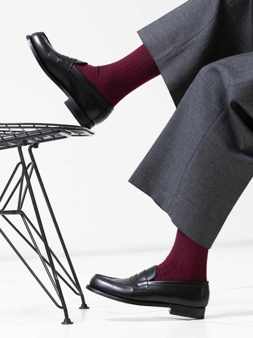 ハイゲージで編み上げたドレスソックス。