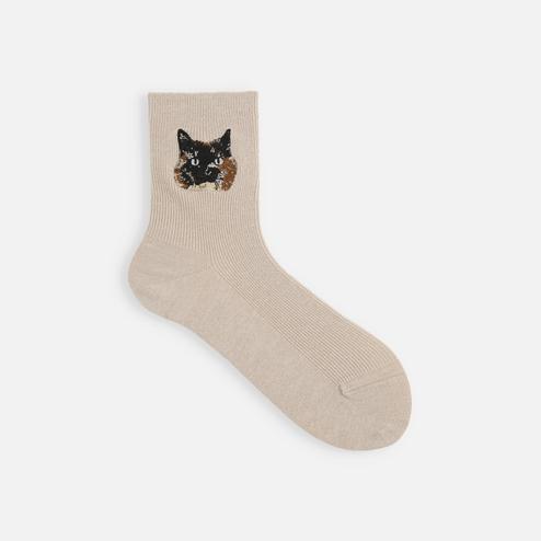 リアルなネコ刺繍がポイントベースの靴下は細めのリブ編みで程よいフィット感ゴム口は柔らかめですキラキラのラメソックスなのでキレイめスタイルにも合わせやすい猫好きの方へのプレゼントに是非‼︎綿 33%アクリル 33%ナイロン 33%ポリウレタン 1%