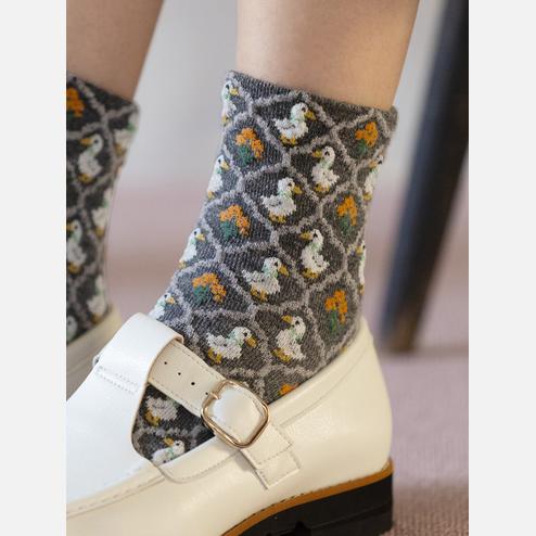 毛混フロートフラワーDuckショートソックス