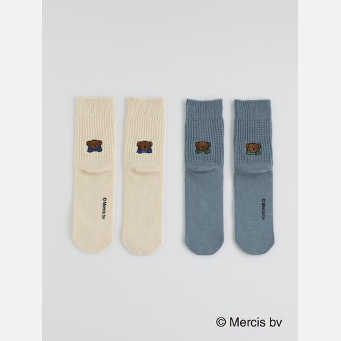 かかと部分のワンポイントが可愛くて 何度も見ちゃう!生地はワッフル素材で柔らかく履きやすさ◎