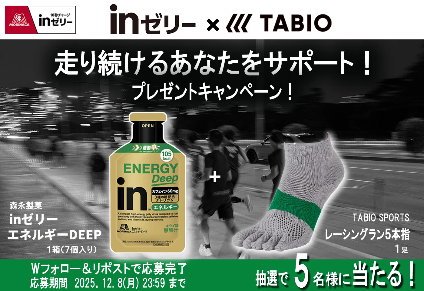 【ランニング・マラソンシーズン到来 】inゼリー と TABIO のコラボプレゼントキャンペーンを開催!