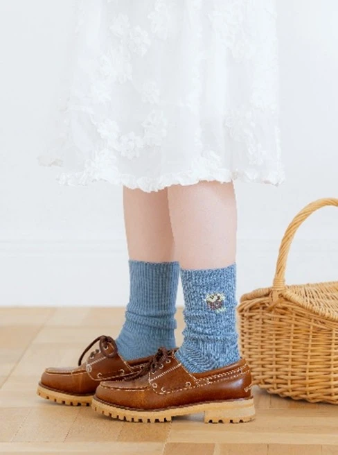 - ローゲージのリブソックスにオリジナル刺繍を施した1足。daisy/hinamiru氏によるフラワーバスケットの手描きイラストを刺繍として施しました。