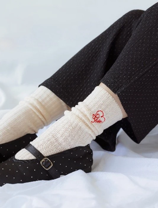 - ローゲージのリブソックスにPtiéeオリジナルロゴ刺繍を施しました。ロゴとハートを組み合わせ、エンブレム風のデザインに仕上げています。