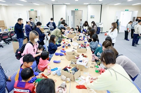 ソックスアニマルのワークショップや、綿から糸にする紡績体験を行っていただきました。