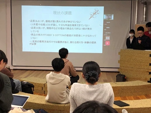 昨年に続き、本年度も5月から奈良先端科学技術大学院大学との産学共同によるTabio’s Cotton事業をテーマにDGI-PBL(デジタルグリーンイノベーション/課題解決型学習)として、数回にわたる講義と成果発表会を行いました。