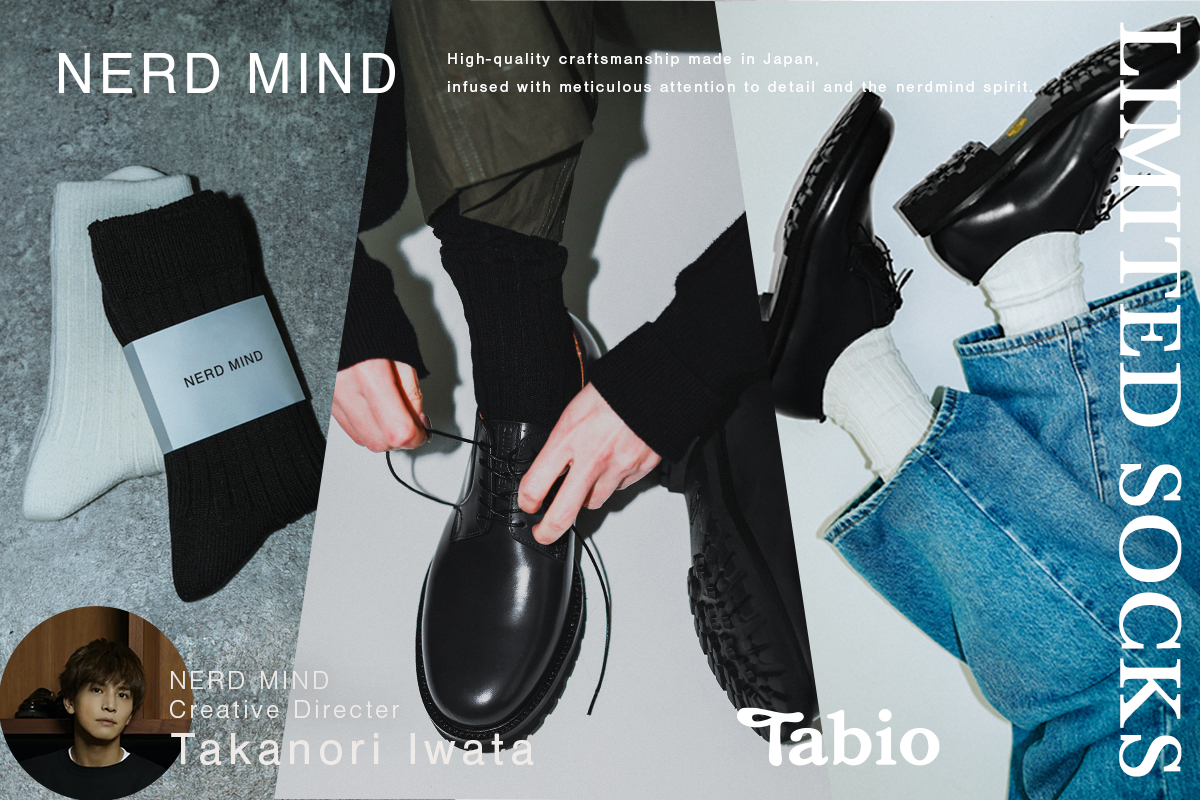 TOPICS NERD MIND × Tabio MEN 岩田剛典がクリエイティブディレクターを務める 「NERD MIND(ナード マインド)」との スペシャルコラボレーションアイテムが 販売スタート。 特集ページはこちら 公式オンラインストア・SNSアカウントで最新情報をチェックしよう 靴下屋チャンネル/新作商品・イベント情報 Tabioオンラインストア Tabio 公式X(旧Twitter) 靴下屋 Instagram Tabio Instagram Tabio Facebook 靴下屋公式YouTubeチャンネル トピックス一覧へ戻る