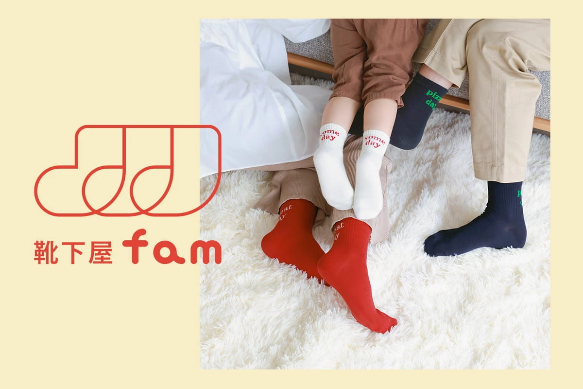 「靴下屋fam」の”fam”には、”ファミリー”や “親しみ”などといった意味を込めています。