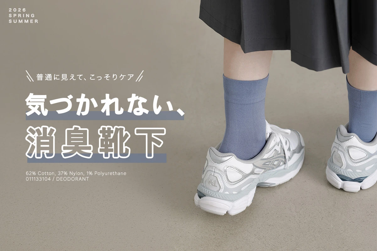 TOPICS 気づかれない、消臭靴下 普通に見えてこっそり消臭ケア ここだけの話、気にしてる人は多い。 靴を脱ぐ日や、長時間歩いたあと。 ふと「大丈夫かな」と思う瞬間、ありませんか? でも、“いかにもケアしてます”はちょっと違う。 だからこそ、 見た目は普通で、こっそり機能的。 気づかれずに整える、 新しい足元の選び方。 特集ページをみる 公式オンラインストア・SNSアカウントで最新情報をチェックしよう 靴下屋チャンネル/新作商品・イベント情報 Tabioオンラインストア Tabio 公式X(旧Twitter) 靴下屋 Instagram Tabio Instagram Tabio Facebook 靴下屋公式YouTubeチャンネル トピックス一覧へ戻る