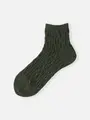 足首くらいまでの丈で、厚手過ぎないので寒い日はタイツと一緒に履いています。秋冬らしい色合いとケーブル柄がコーディネートのちょっとしたアクセントになります。