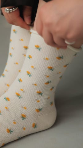 くるくるワッフル花柄ショートソックス