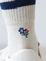 折り返しもできる2本ラインフラワー刺繍ソックス