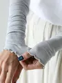 商品名にある通りになめらかでとろみ感のある肌触り。日焼け対策としてはもちろん、室内の冷房等の冷え対策としてもご利用いただけます◎袖口部分がメロウなので、無地のワンカラーでもかわいくご着用いただけます。また、商品の総寸少し長めが約45cmなので、二の腕から手首までしっかりとカバーできるのも嬉しいポイントでした!薄手で持ち運びに便利で日差しが気になる時期には常に着用(携帯)しておりました…!