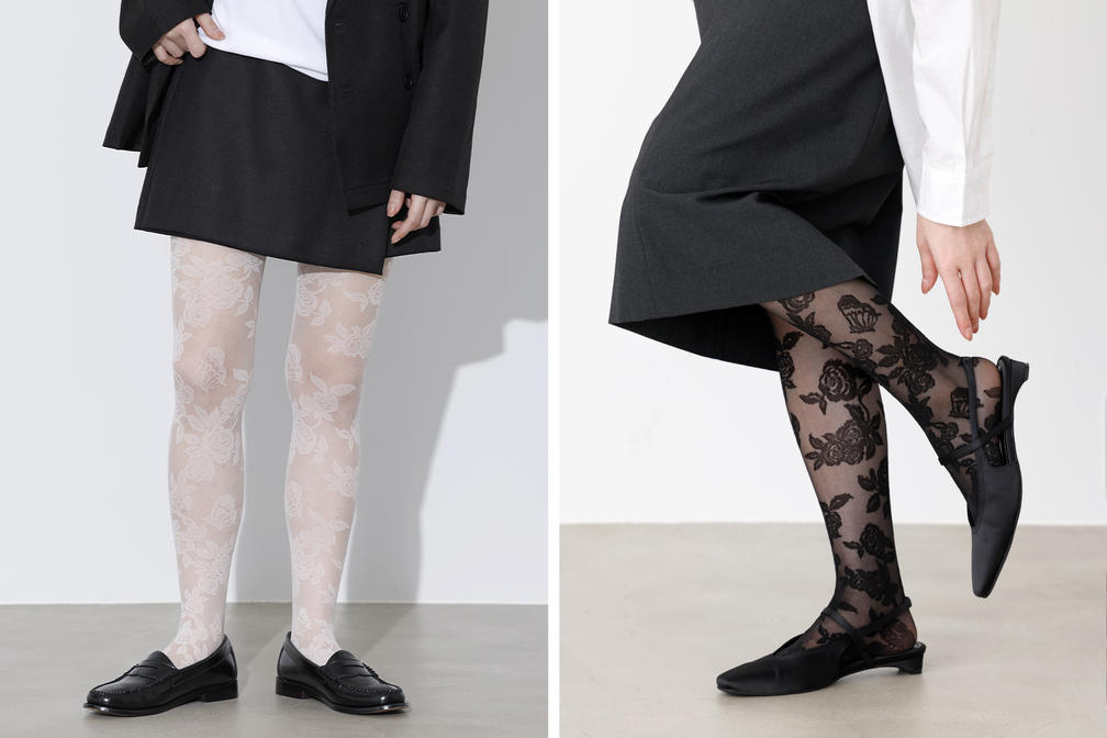 エレガントな総柄タイツです。