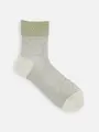 履き口がソフトなやわらかさなので締め付け感がなく、薄手なのでぴったりめのパンプスも窮屈にならず履けます。ゴム口のラメがポイントになるので、上品な足元に仕上がります。