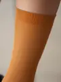 定番の同じ1×1リブのソックスを愛用していましたが、そちらと比べると生地は光沢感があって薄手で柔らかく、しなやかな手触りです。なので、綿混でもカジュアルにならずパンプスやバレエシューズと合わせてきれい目に履いていただけると思います!履き口も締め付け感が少ないのでよかったです。スカートの丈に合わせて少しくしゅっとさせていただくとバランスよく履いていただけると思います!