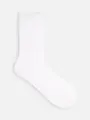 • カジュアルではなくきれいめスタイルに靴下コーデを愉しみたい方にぴったりです。綿なのにとても美しい光沢感が特徴です。細いリブが子供っぽくならず少したるませて履いても、カワイイ丈感です。