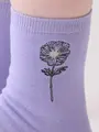 すっきりした生地なので、バレエシューズやパンプスと履きやすかったです。履いた時の丈は、ふくらはぎの細い部分あたりの丈でした。どの丈のパンツやスカートとも使えます。大きな一輪の花がポイントなので、この花が見える丈のボトムでぜひ見せて履いてほしいです♪