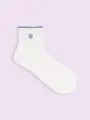 生地も薄めで足首までしっかりくる丈感です。履き口部分に刺繍と同じカラーのラインが入っていてポイントになります。バレーシューズにもスニーカーにも合わせやすいのでオススメです!
