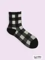 【3足1,386円】毛混タムゴム口ゆったりメロウJQチェックショートソックス
