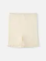 タイツやストッキングを履きたくないときや、お腹の冷えるときに最適。裾がメロウ加工(ヒラヒラ)しているので締め付けなく、適度な長さです。洗濯しても伸びることなく履けます。薄いけど温かく外に響きにくいです。