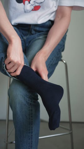 清涼感のあるシャリッとした肌触りが心地よく、つま先のツッパリ感も気になりにくく感じました◎シンプルなのでON・OFF問わず履けます。