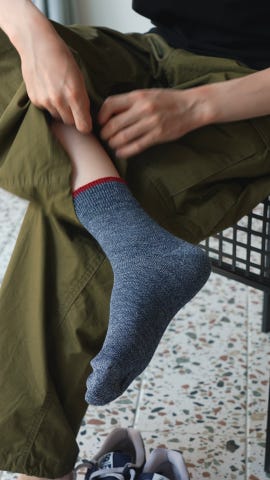 【Tabio MEN】TOP切り替え綿麻引き揃え鹿の子ショート丈ソックス