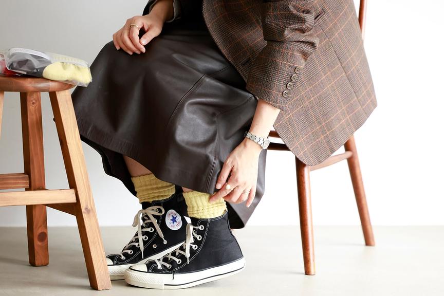 - う〜ん…強いて言うなら、靴下はボリュームのあるものを選んでくしゅっとさせることが多いかもです。脚がちょっと華奢に見える気がして(笑)。