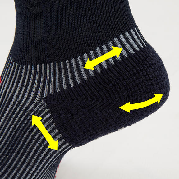 スィングに重要になるかかとや指の付け根部分も、しっかりフィットするように立体的に仕上げました。 いままでにない程立体的な靴下は、パッと見ただけでも今までの靴下との違いを感じていただけます。