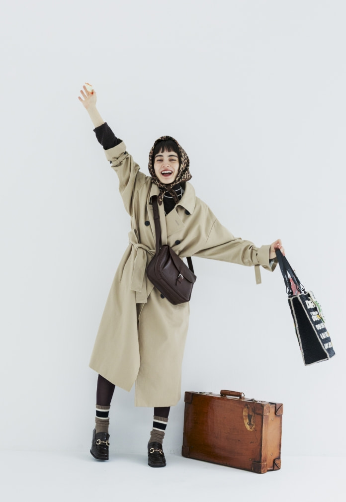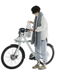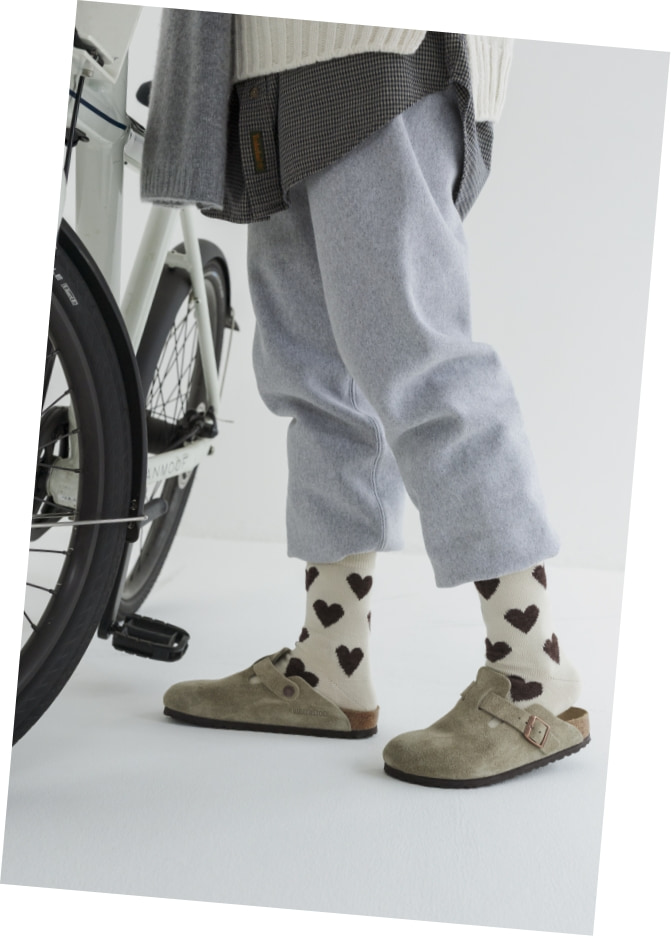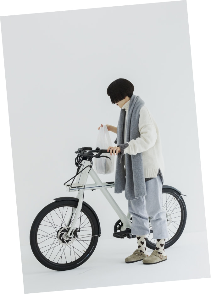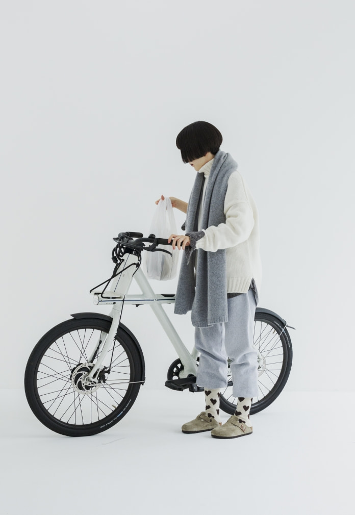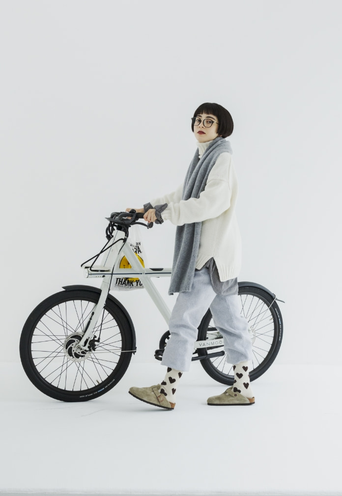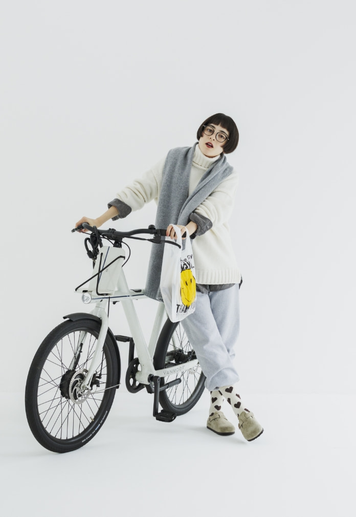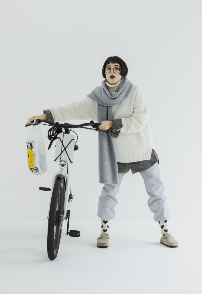 旅! 暖かいグレーコーデに身を包み、自転車の