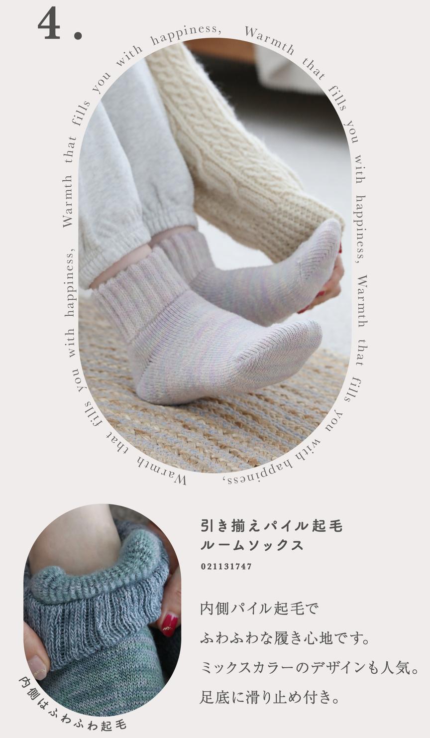 温もりだけでなく、やさしい履き心地も魅力。 足元から心までほっと癒してくれる ルームソックスを集めました。