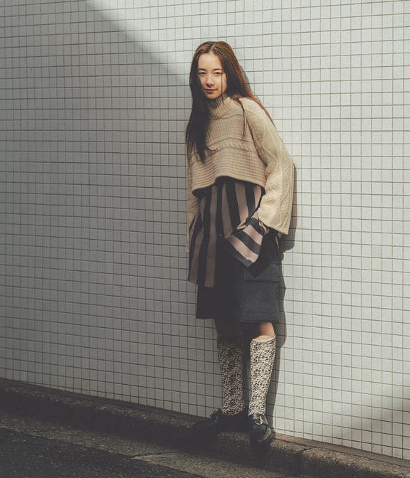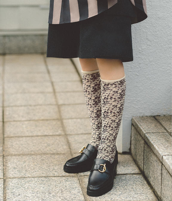 ニュアンス総小花柄ハイソックス Color:04 オフベージュ