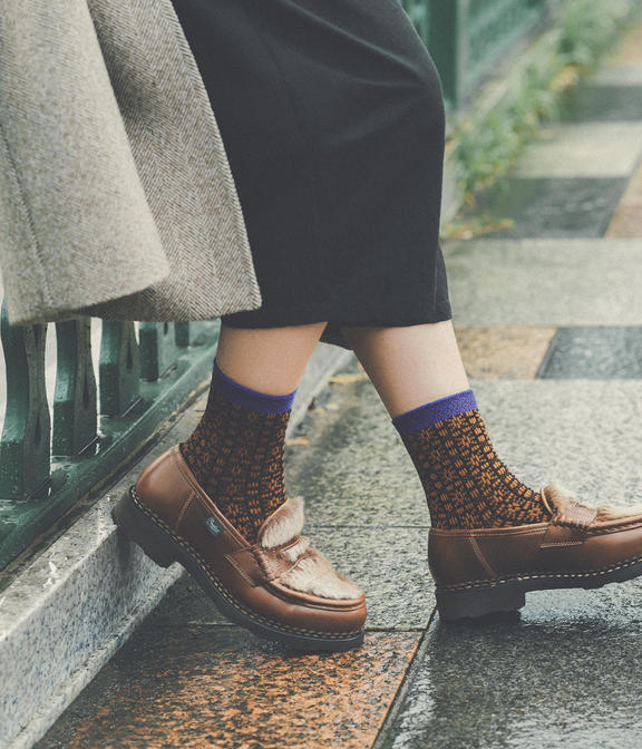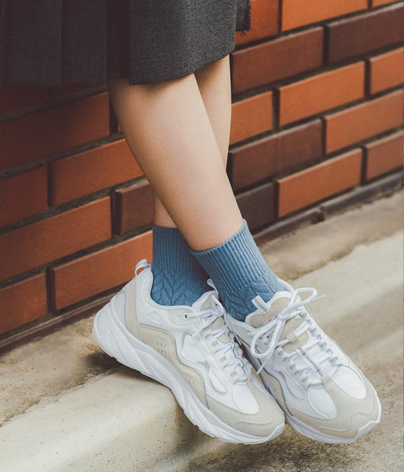 毛混ヘリンボーン柄ショートソックス Color:81 ウィンターブルー