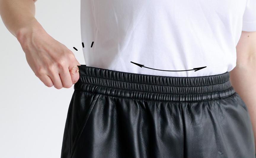 ウエストまわりは総ゴム仕様で、快適な履き心地。