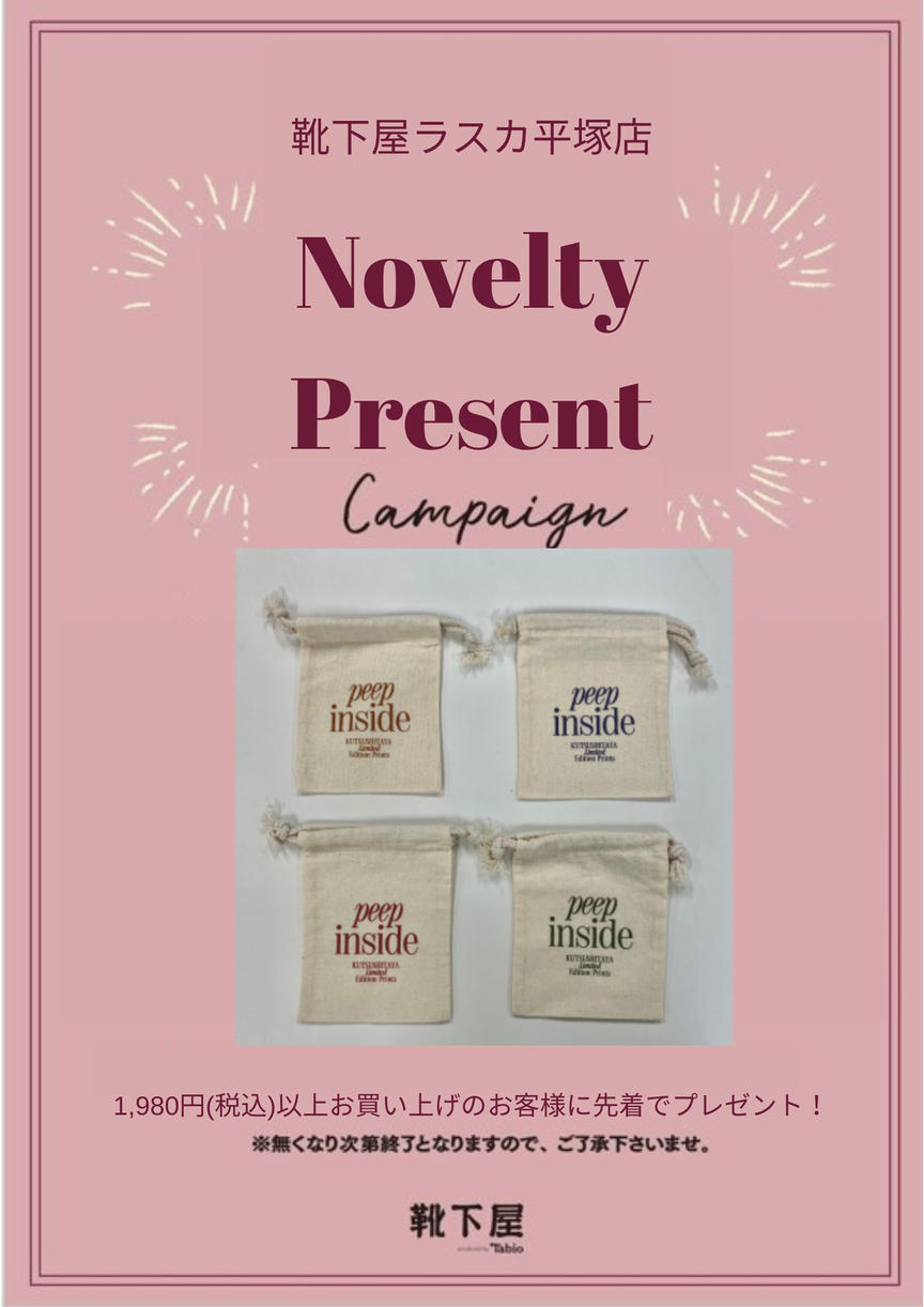 6/26(水)にラスカ平塚の1・2階が リニューアルOpenします。 それを記念して靴下屋では、 税込1,980円以上お買い上げの お客様に先着でオリジナルミニ巾着を プレゼントいたします。 無くなり次第終了となりますので、是非お早めにご来店下さいませ♪