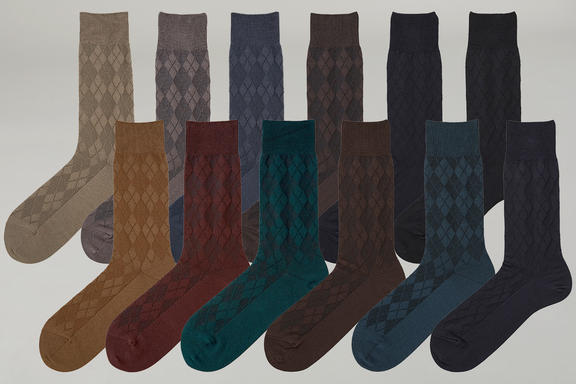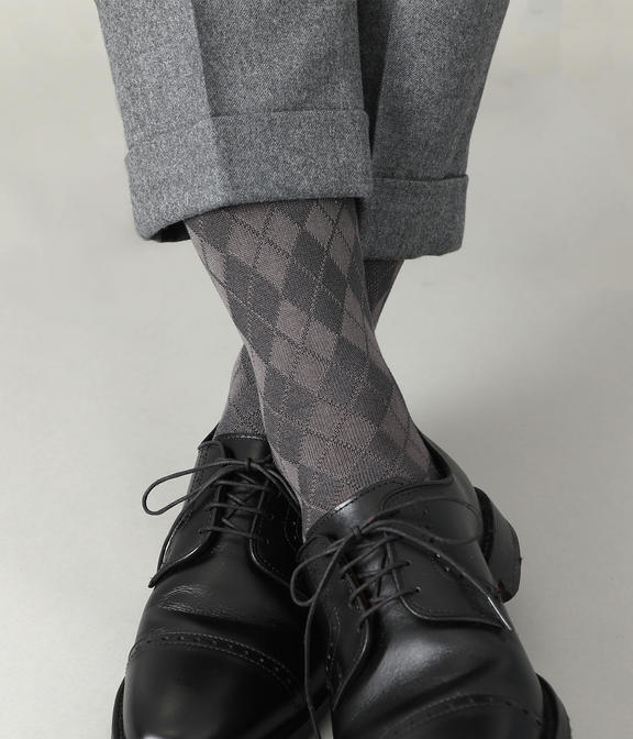 英国起源の伝統モチーフを、品良く編み柄で。 柔らかさと光沢感を兼ね備えたコットン素材。 L168 “Egyptian Cotton" 総ダイヤ柄ソックス ¥990(税込)