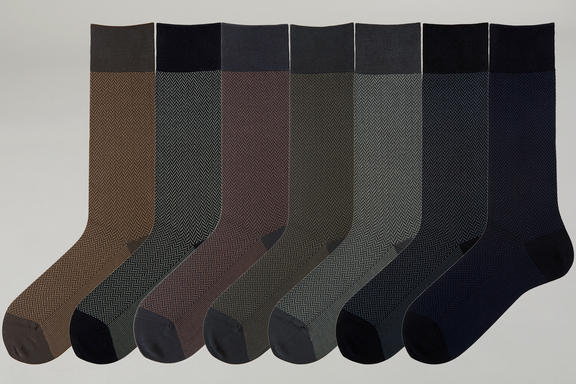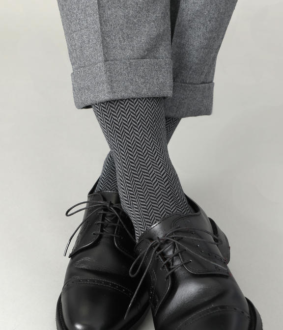 知性と落ち着きが薫る、ヘリンボーンの編み柄。 選りすぐりを掛け合わせた上質なコットン素材。 JQ220 “Silky Cotton" ヘリンボーンソックス ¥990(税込)