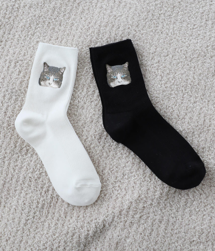 こちらははっきりカラーで刺繍したキジ白おっくんの顔ソックス。
