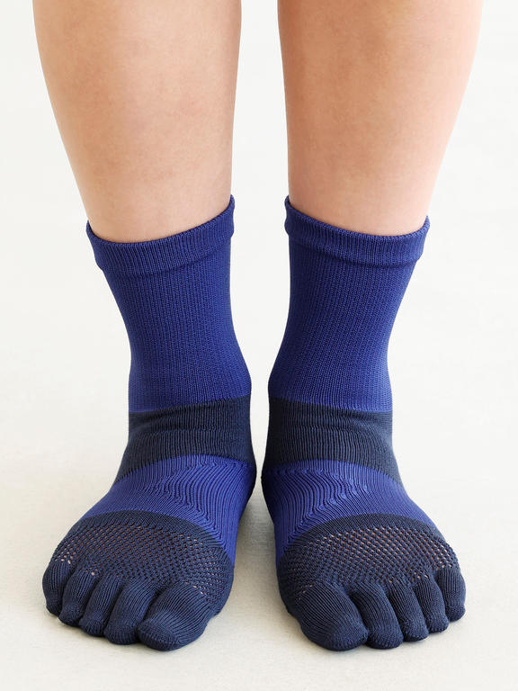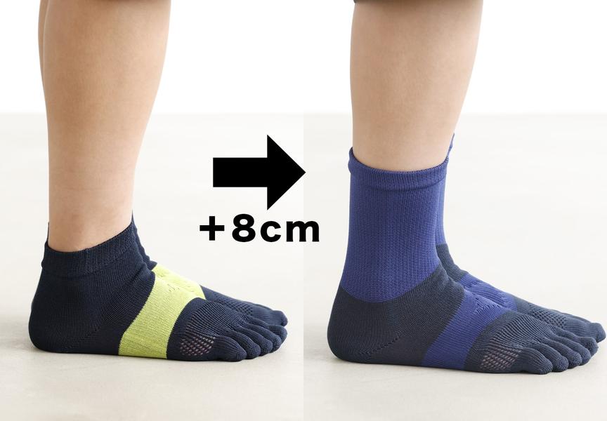 レーシングラン五本指の機能はそのままに、 丈が8cmから16cmへ。 着用の安定感がよく、 ロングタイツとのすき間を解消します。 夏場の足首の日焼けや 冬の寒さ対策にぴったりです。
