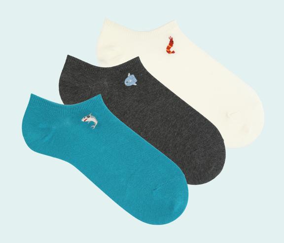 水族館でも人気の かわいい海の生き物の刺繍が入った スニーカー用ソックス!